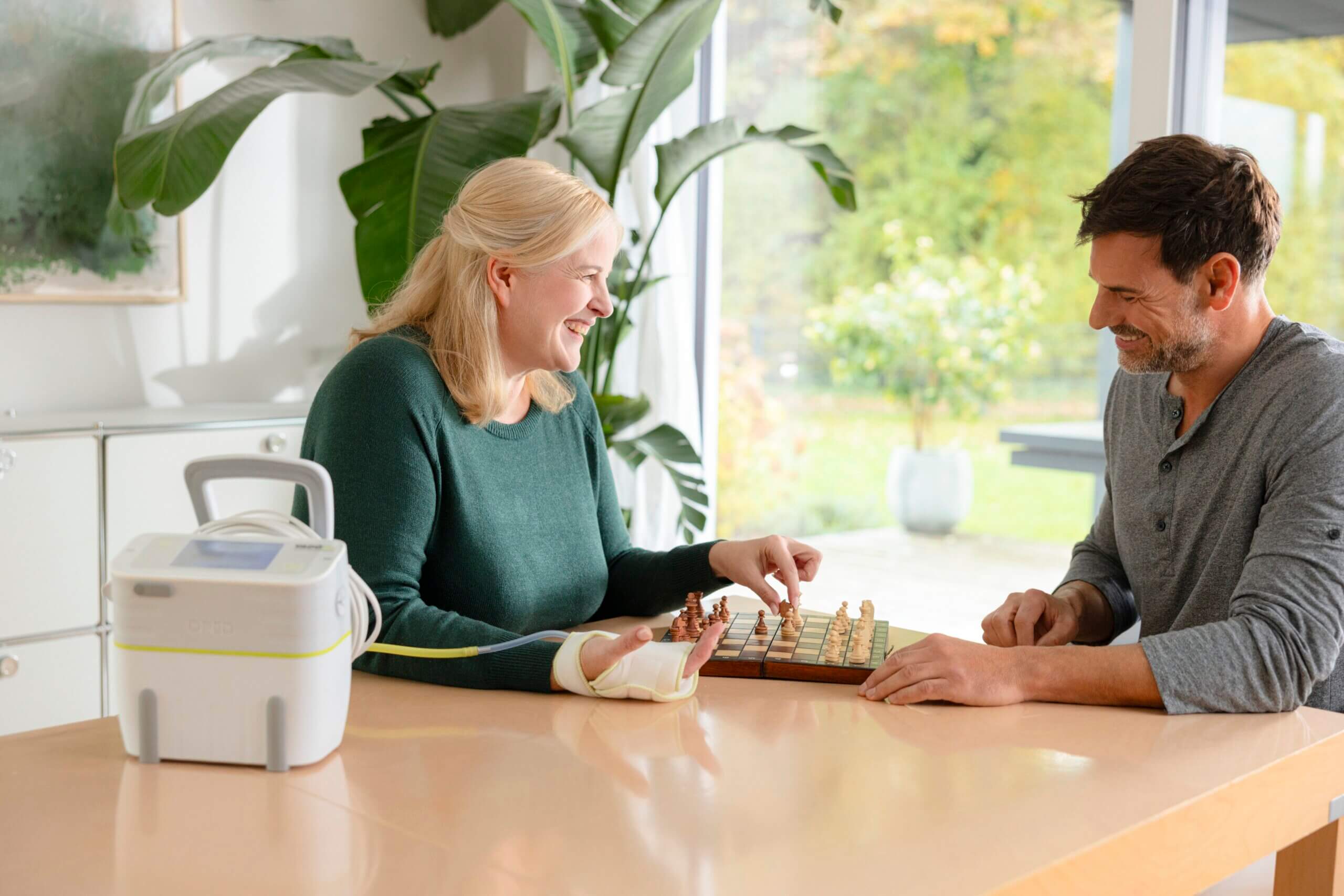 Or therapy can be delivered through the hand, with many clinical trials over several years showing it’s effectiveness with swelling reduction and finger flexion after injury such as a distal radius fracture.